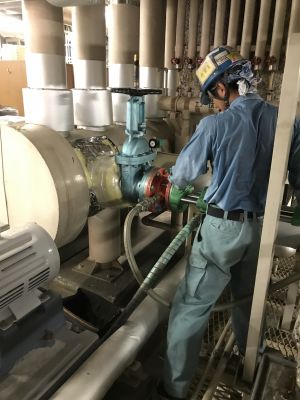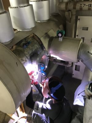 既設配管が20年前ぐらいに施工されていたので超音波検査にて肉厚を測定してから分岐工事を行いました。