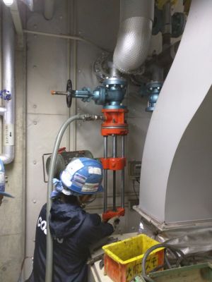 既設配管の分岐方法は他にもありますが今回の場合は既設配管が24時間利用しているため停止ができないため実施しました。